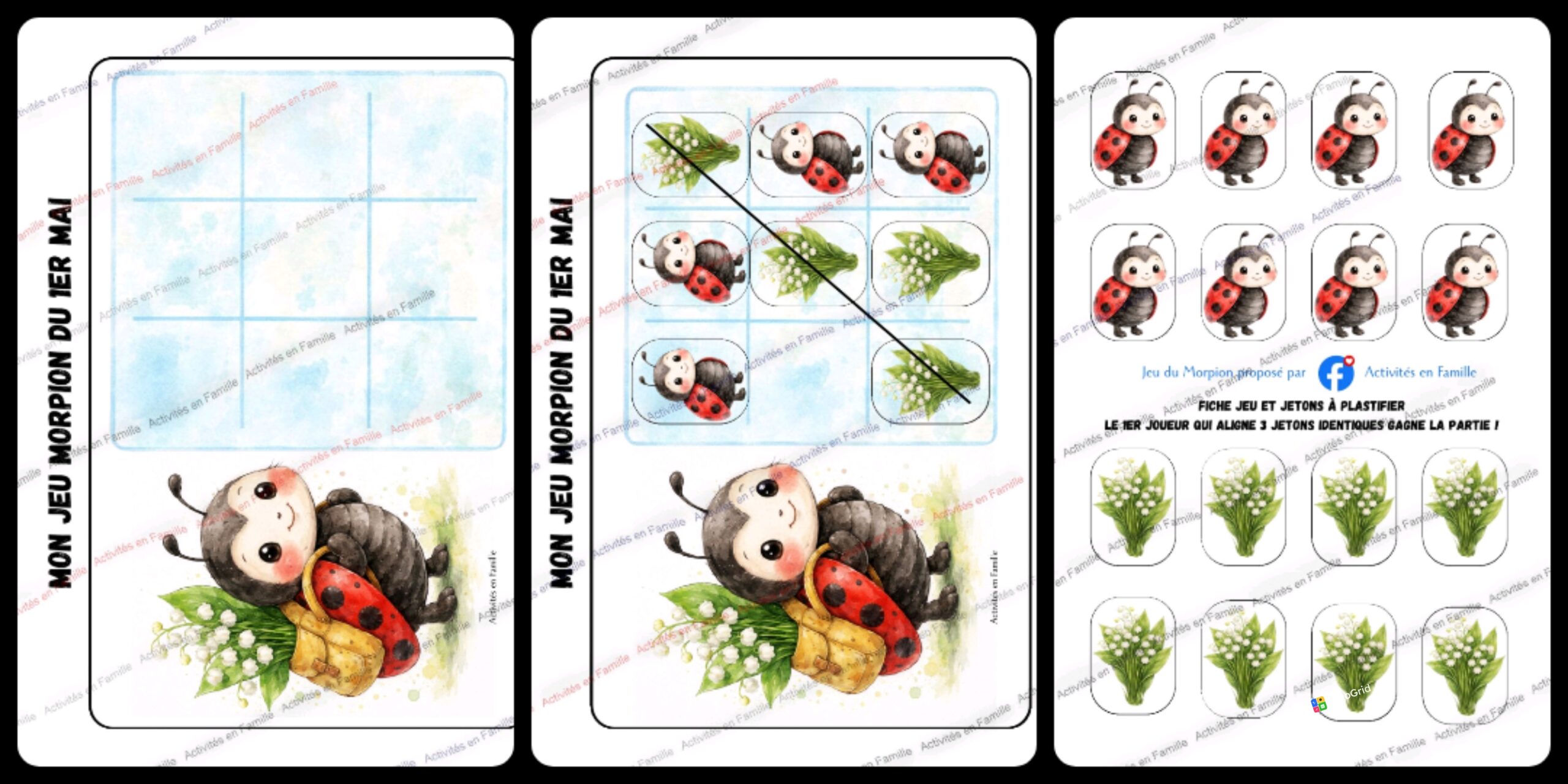 Si je vous parle du jeu du morpion, ça vous dit quelque chose ? Moi ça me rappelle des souvenirs d’enfance, alors j’ai décidé de réaliser des jeux du morpion sur différents thèmes à plastifier de manière à varier les plaisirs !